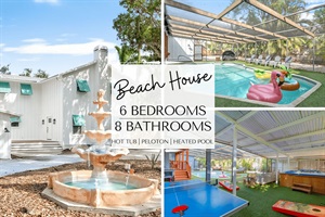 6 Bedrooms • 9 Bathrooms (6 full, 3 half) 9 Baths (6 full, 3 half) • Sleeps 11-20Hosted by "Bourbon City Rentals", this massive 5000 Sq Ft Beach House is just a short drive to the beach and steps from the bay! 6 Private Suites—each with a private ensuite bath—sleeps 20, perfect for multiple families. Enjoy an 85" TV Home Theater, Billiard Room, Game Room, Hot Tub, Peloton, & Heated Screened Pool with entertainment space. Dine together at the oversized custom-built 12-ft table. Plus, our backyard is professionally treated for mosquitoes! Minutes from top dining, shopping, and Anna Maria Island’s beaches!